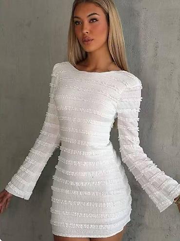 Elegantna bela haljina, dužine do kolena, idealna za svečane prilike