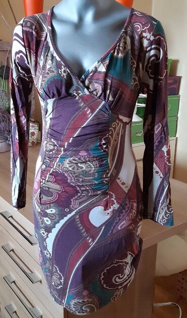 Haljina sa dugim rukavima, elastična, uz telo. - V-izrez sa