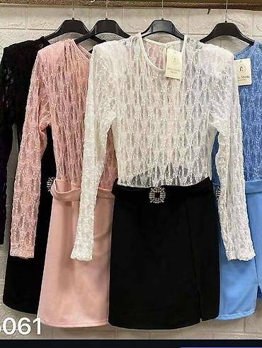 - Dostupne boje vidljive na fotografijama: svetloplava, crna, bela/čipka sa crnom suknjom, puder‑roze varijanta; čipka u istoj ili kontrastnoj nijansi u odnosu na suknju.