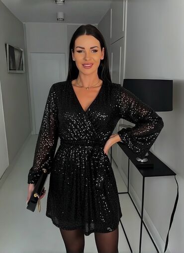 Dugačka maxi haljina sa romantičnim cvetnim printom na crnoj podlozi. Gornji deo je krojen na preklop sa V-izrezom, naglašava struk i spušta se u lepršavu suknju A-kroja. Rukavi su dugi, blago prov...