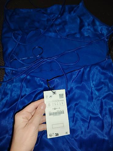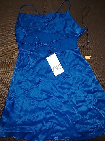 Plava svilena/atlas haljina na bretele – Zara - Boja: intenzivno