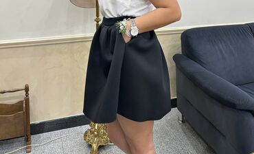 Nova, fenomenalna suknja, crna, sa etiketom, imitacija koze napred, a pozadi materijal sa elastinom koji se tegli. Vel M( mogu da merim) Fenomenalna je!