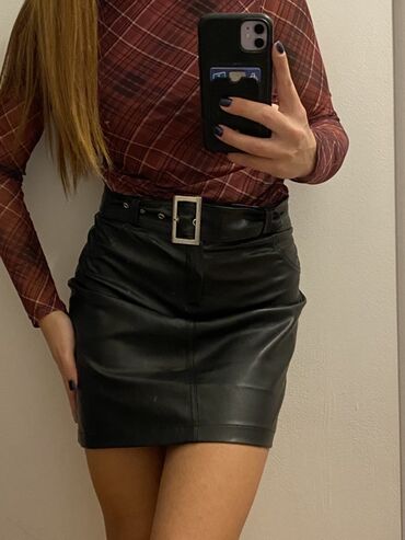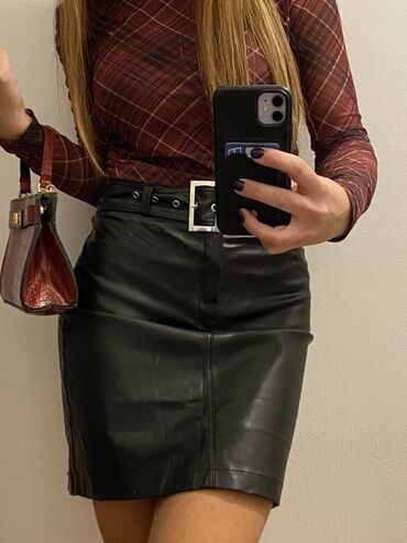Nova, fenomenalna suknja, crna, sa etiketom, imitacija koze napred, a pozadi materijal sa elastinom koji se tegli. Vel M( mogu da merim) Fenomenalna je!