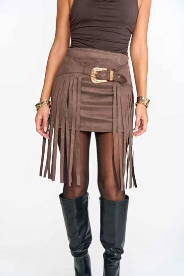 - Detalji: dugi resasti paneli oko celog obima, koji se kreću pri hodu i daju boho/vestern izgled.