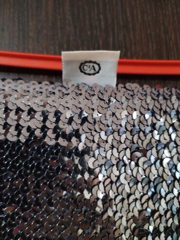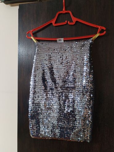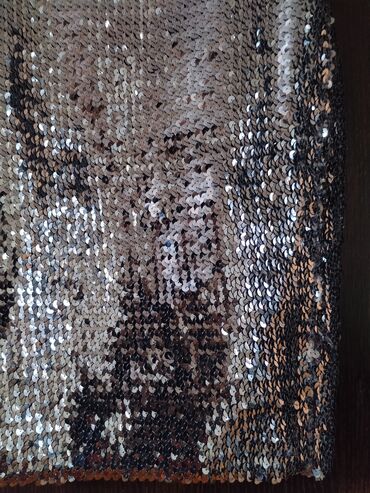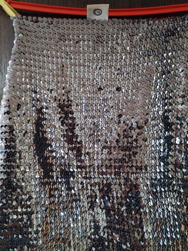 - Model: uska mini suknja, ceo prednji i zadnji deo prekriven gustim srebrnim šljokicama koje se presijavaju u više tonova (srebrna, siva, tamnija metalik)