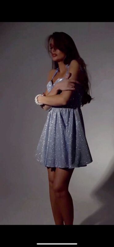 Ženska mini haljina sa šljokicama – asimetrični kroj, jedan dugi rukav - Dizajn: jednoranamenica (one-shoulder) sa jednim dugim rukavom i dekorativnim otvorom na struku koji naglašava siluetu. - D...