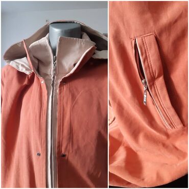 Ženska jakna STRANGE, narandžaste boje sa bež postavom i kapuljačom.