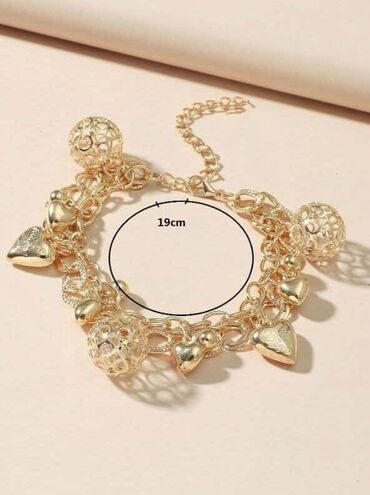 - Detaljno izrađena, narukvica deluje raskošno i romantično zahvaljujući srcima i otvorenim kuglama koje se nežno njišu pri pokretu. Idealna kao akcentni komad ili poklon.