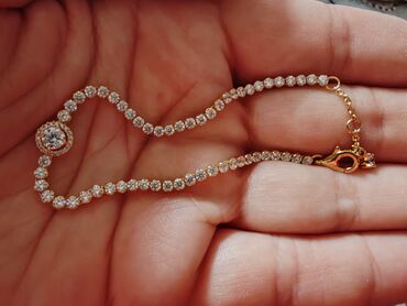 - Dizajn: teniska narukvica sa nizom briljantno sečenih bezbojnih kamenčića; centralni okrugli motiv sa većim kamenom u pavé okruženju