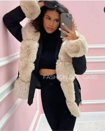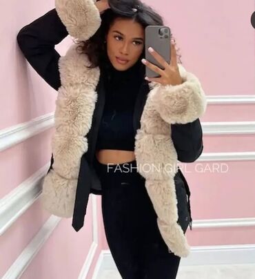Ženska zimska parka kaput u svetlo bež nijansi. - Topla, bogata eco‑krzno postava i obrubi: krzno duž ivice kapuljače, duž prednje ivice, na rukavima i unutar kaputa za dodatnu termo‑izolaciju. - ...