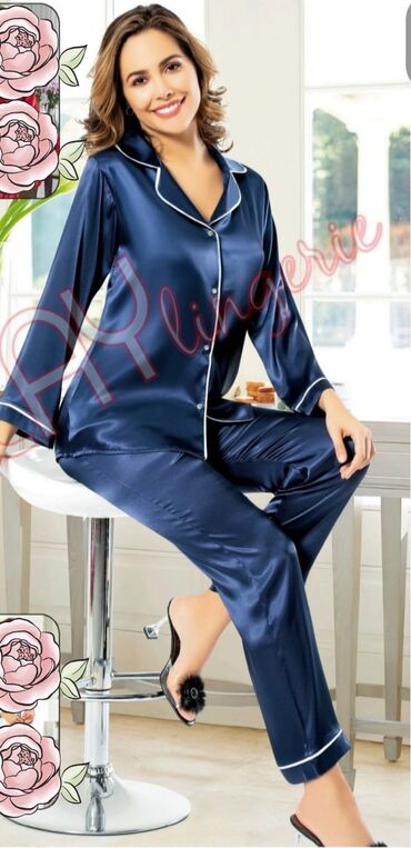 Elegantan ženski set pidžama u beloj boji, izrađen od satena. Komplet sadrži majicu kratkih rukava sa V izrezom i duge pantalone sa elastičnim pojasom. Detalji od čipke dodaju sofisticiranost. Idea...