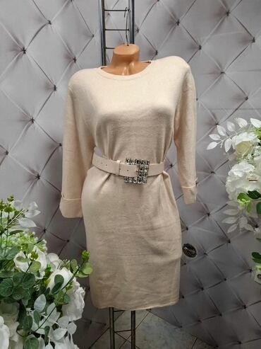 Ženska pletena haljina/suknja-džemper - Model: uska, mini dužina, može se nositi kao haljina-džemper - Kroj: obla izrezna linija (širi, može da ide preko ramena), dugi rukavi sa rebrastim manžetna...