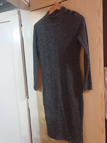 Pleteni džemper-haljina, tamnosiva melirana.