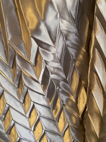 - Dizajn: bogate geometrijske nabori u obliku riblje kosti (chevron) koji daju 3D efekat i punoću