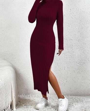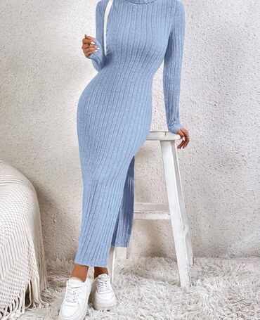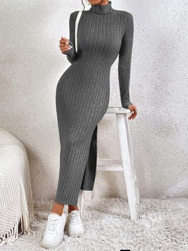 Rebrasta ženska pletena haljina sa rol‑kragnom