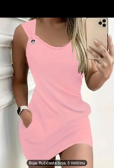 Ženska mini haljina u ružičastoj boji, bez rukava, dužine iznad