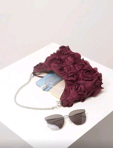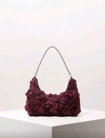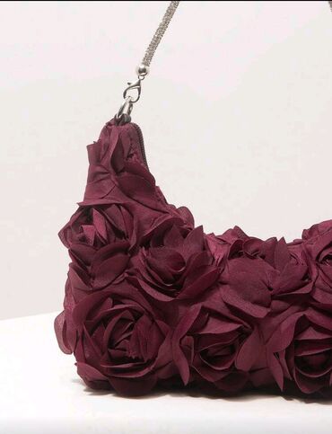 - Dizajn: torbica prekrivena bogatim 3D aplikacijama ruža u bordo (vino) nijansi; upečatljiv večernji/posebni aksesoar.