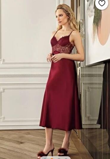 O trošku kupcaElegantna ženska spavaćica u tamnocrvenoj boji, izrađena od glatkog satenskog materijala koji lepo pada i pruža osećaj luksuza. Gornji deo spavaćice ukrašen je delikatnom čipkom sa cvetnim dezenom, koja se proteže preko dekoltea i gornjeg dela grudi, dodajući sofisticiran izgled. Tanke bretele osiguravaju udobnost i slobodu pokreta. Spavaćica seže do sredine lista, što joj daje klasičan i elegantan kroj. Idealna je za opuštanje kod kuće i pruža osećaj udobnosti i stila.