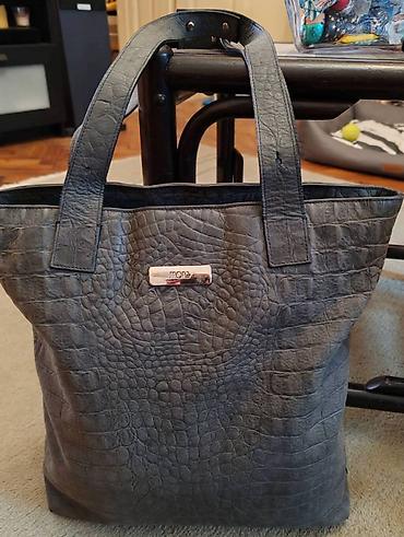 Torba je licno moja Lepo ocuvana, nema duzi kais. Nikad nije ni imala iako ima opciju da ga stavite. Torba se nosi u ruci. Kombinacija crne, bele i sive boje lako uklopiva u razne odevne kombinac...