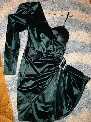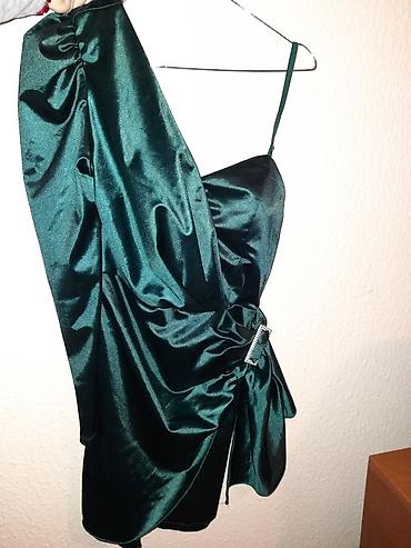 Elegantna mini haljina u smaragdno zelenoj boji, sa asimetričnim gornjim delom: