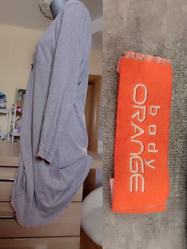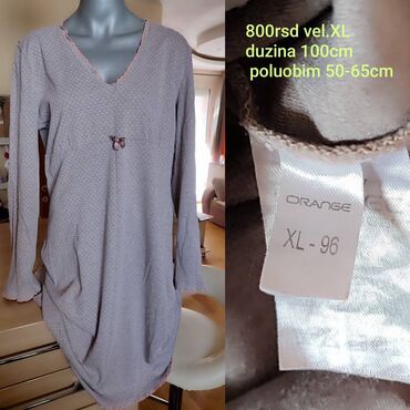 Ženska spavaćica ORANGE, veličina XL (etiketa XL-96). - Boja: svetlosiva sa sitnim ružičastim tufnama - Dužina: 100 cm - Poluobim: 50–65 cm (elastično u predelu grudi/struka) - Kroj: blago A-linija...