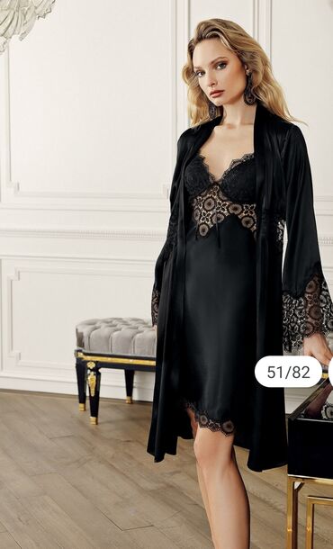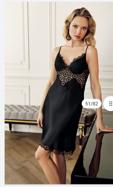 O trošku kupcaElegantna ženska spavaćica u crnoj boji, sa tankim bretelama i diskretnim V-izrezom. Gornji deo je ukrašen prozirnom čipkom sa cvetnim dezenom i geometrijskim detaljima, dok se čipkasti porub nastavlja i duž donjeg ruba spavaćice. Izrađena od svilenkastog materijala, pruža nežan osećaj na koži, idealna za udoban san ili opuštene večeri kod kuće.