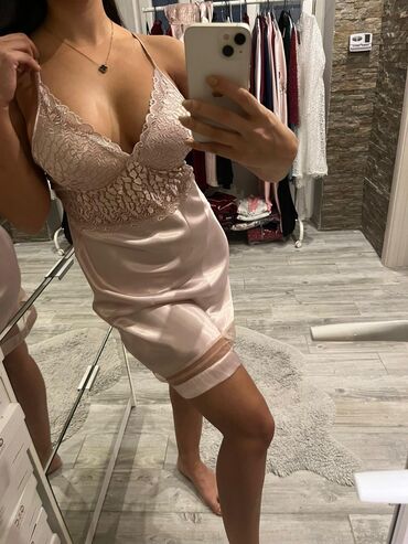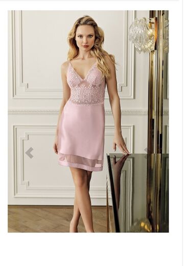 O trošku kupcaElegantna ženska spavaćica u nežnoj ružičastoj boji sa čipkanim detaljima na grudima. Spavaćica ima tanke bretele koje se ukrštaju na leđima, pružajući udobnost i atraktivan izgled. Donji deo spavaćice je ukrašen providnom trakom, dodajući sofisticiranost. Izrađena od sjajnog materijala koji podseća na saten, ova spavaćica je idealna za opuštanje.