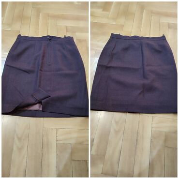 Braon deblja postavljena suknja, veličina 36. Klasičan kroj ravne linije, srednja dužina. Dužina 54 cm, poluobim struka 36 cm. Zakopčavanje napred na rajsferšlus i dugme, sa unutrašnjom postavom za udobnost i lep pad. Materijal je kompaktniji, pogodan za hladnije dane. Cena: 300 din.