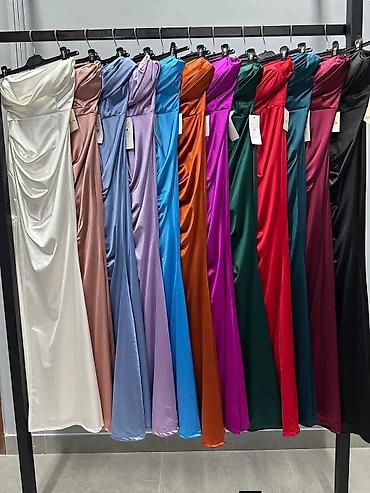 Elegantna duga svečana haljina sa visokim bočnim šlicem i drapiranim gornjim delom. Asimetričan korset sa blagim kaskadnim preklopima lepo prati figuru, dok mekani, rastegljivi satenski materijal pruža udobnost i sjajan, luksuzan izgled. Leđa su glatka, kroj naglašava struk i pada u dugi efektan šlep.