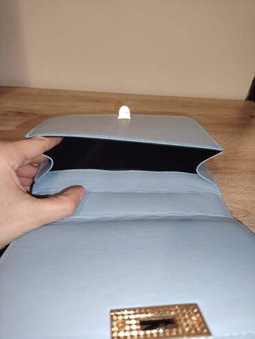 - Unutrašnjost: jedan glavni odeljak sa tamnom postavom, pregledan i praktičan za osnovne potrepštine (telefon, novčanik, ključevi, ruž)