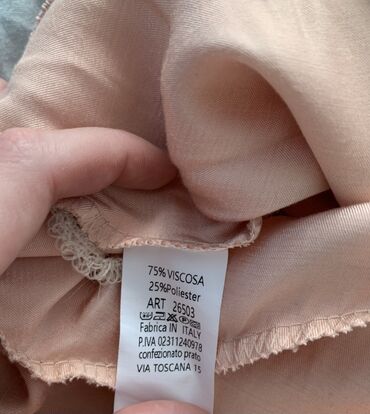 - Materijal: 75% viskoza, 25% poliester (etiketa prikazana)