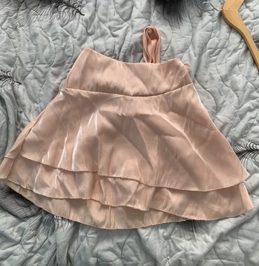 ItalijaSvilenkasta ženska mini suknja u puder‑rozoj boji.