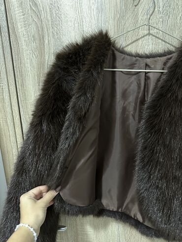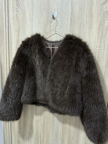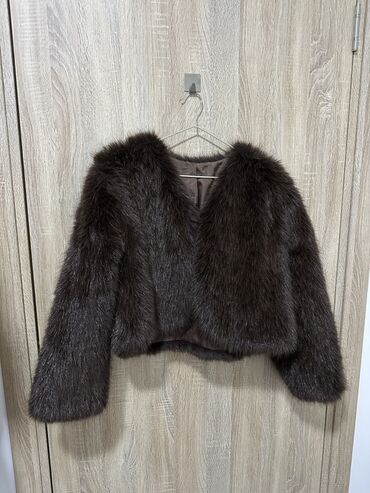 Kratka bunda/jakna od veštačkog krzna u tamno braon boji. S velicina.