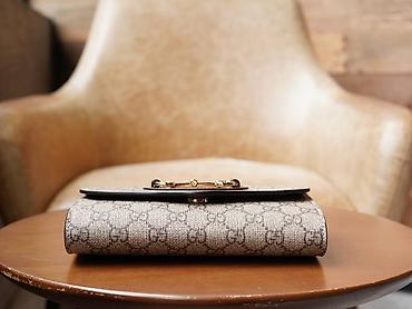 - Hardver: masivan lanac i ukrasna kopča u zlatnom tonu; prednji metalni detalj u obliku snaffle/konjičke uzde