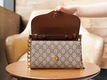 Dizajnerska tašna sa lancem – monogram platno i kožni detalji