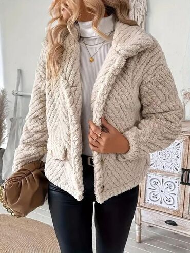 Drugo✨Ženska jakna od mekane “teddy” pliš tkanine, bež/boja peska.