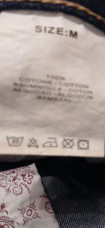 - Materijal: 100% pamuk (džins), etiketa sa uputstvom za održavanje – pranje na 30°C, bez izbeljivača, peglanje na niskoj temperaturi, bez hemijskog čišćenja, sušenje u mašini na niskoj temperaturi.