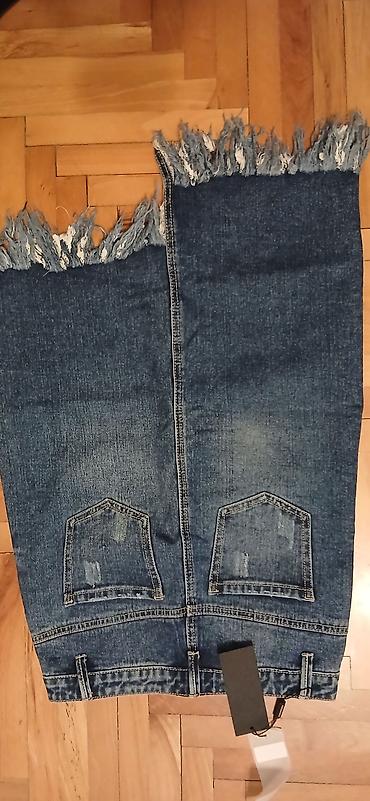 Teksas suknja, tamno plava (indigo), A-kroja do iznad kolena. -
