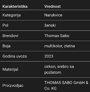 Thomas Sabo narukvica sa raznobojnim kamenjem od 925 srebra sa 18k pozlatom, podesive dužine.