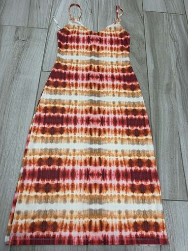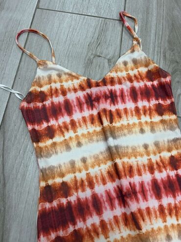 - Uzorak: horizontalne tie-dye pruge u nijansama crvene, narandžaste, braon i bele