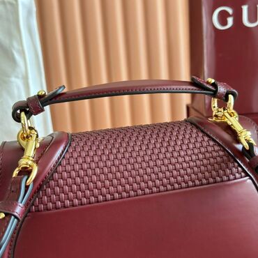 Gucci torba – bordo koža, pleteni efekt i zlatni detalji