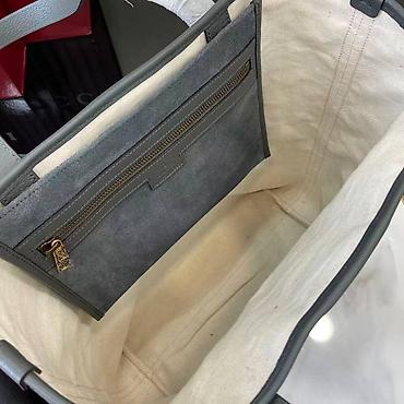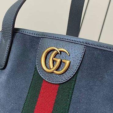 Siva tote torba od antilopa sa kožnim detaljima i dvostrukim ručkama za nošenje preko ramena. Prednju stranu krase karakteristične zelene i crvene pruge i zlatni metalni GG amblem. Unutrašnjost je prostrana, sa svetlom tekstilnom postavom i velikim unutrašnjim džepom na rajsferšlus za bezbedno odlaganje sitnica. Strane i ivice su ojačane kožom radi stabilnosti forme. Dizajn je minimalistički i elegantan, pogodan za svakodnevnu upotrebu ili posao, uz dovoljno prostora za dokumente, tablet i druge potrepštine. Klasičan stil sa prepoznatljivim brend detaljima.