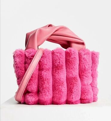 Ženska torba od veštačkog krzna u jarkoj ružičastoj boji. Torba je kvadratnog oblika, sa reljefnim rebrastim dizajnom na spoljašnjoj strani. Ima dve ručke, od kojih je jedna u obliku uvijene trake, a druga je tanka i može se koristiti kao kaiš za nošenje preko ramena. Torba je pogodna za svakodnevnu upotrebu i dodaje živopisan akcenat svakoj odevnoj kombinaciji.