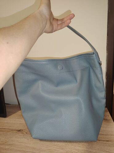 Velika ženska torba preko ramena – svetloplava - Materijal: veštačka