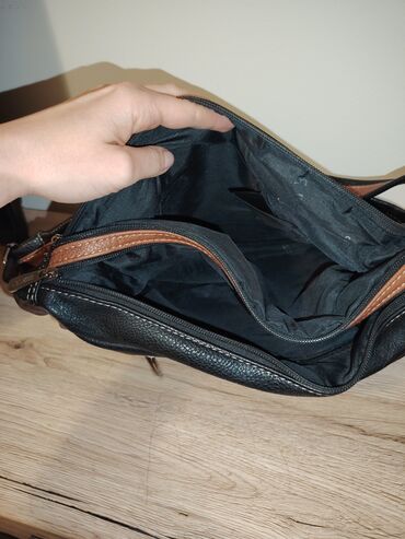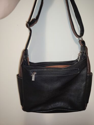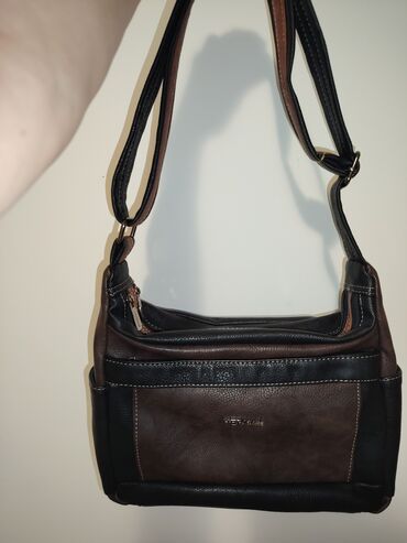 - Materijal: veštačka koža, kombinacija crne i tamno braon boje sa dekorativnim štepom u kontrastu.