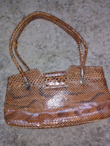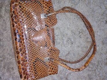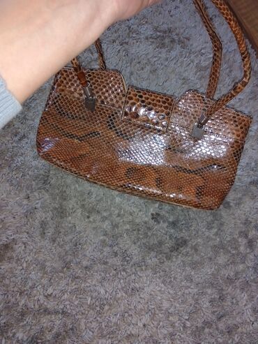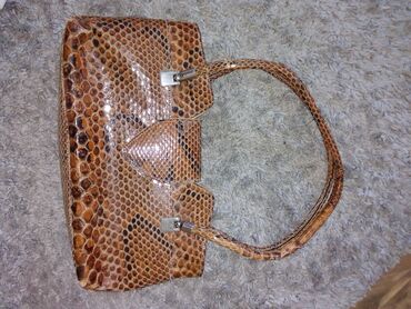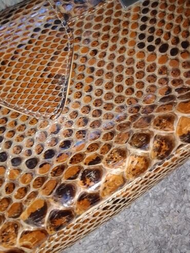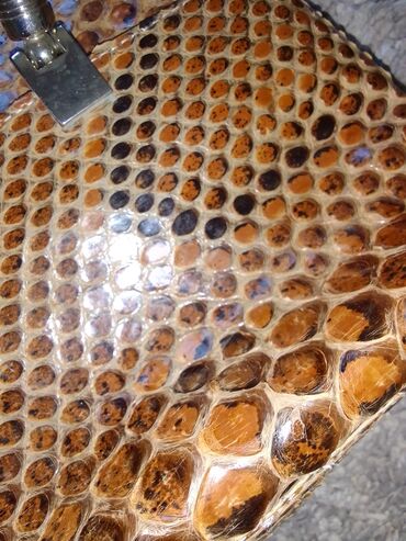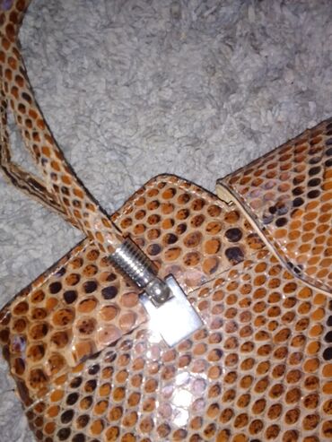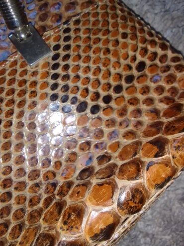 - Materijal: sjajna, teksturisana površina sa uzorkom zmijskih krljušti u nijansama karamela, braon i crne