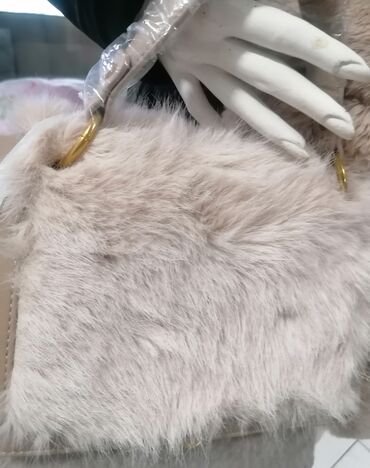 Elegantna ženska torba bež boje sa krznenim gornjim delom i