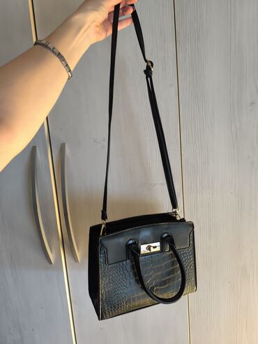 CrnaElegantna crna torba sa teksturom krokodilske kože novo