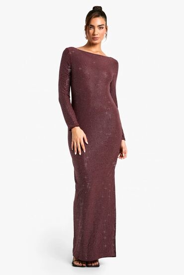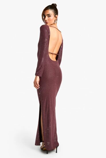 2) Duga haljina boje vina sa sjajnim detaljima ,L-XL vel