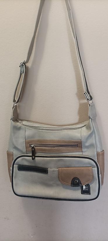 Ženska torba preko ramena – višedžepna, siva sa bež detaljima